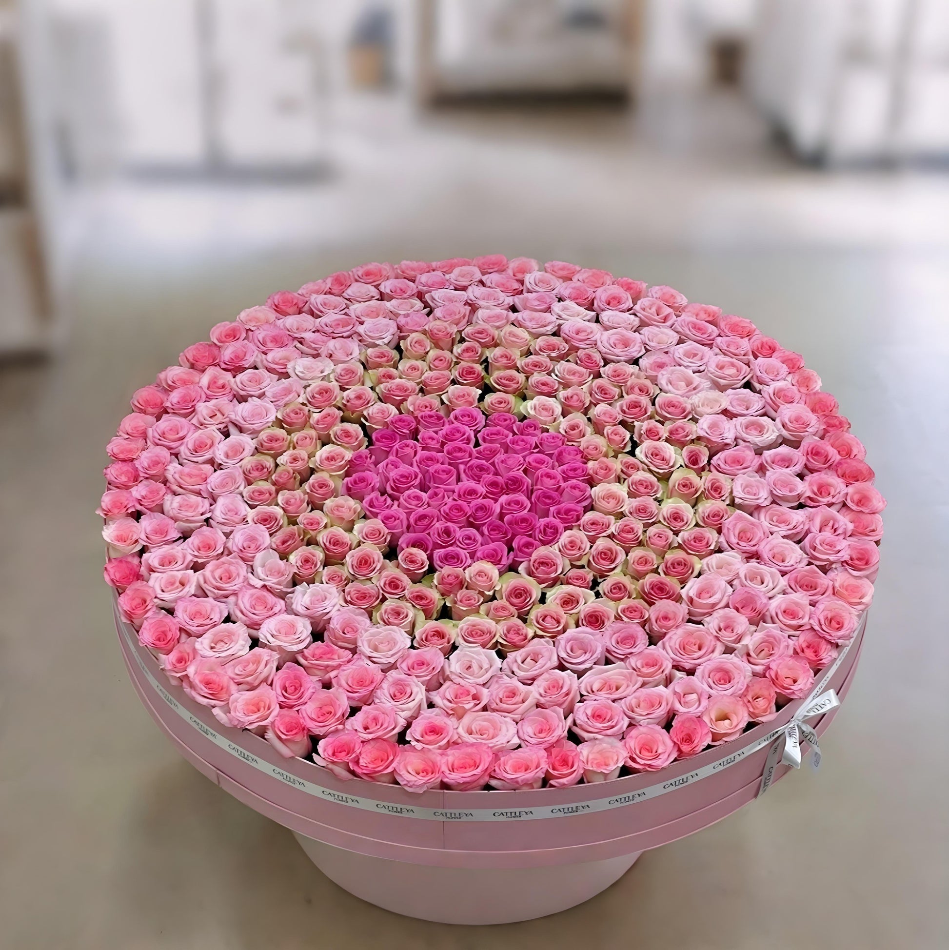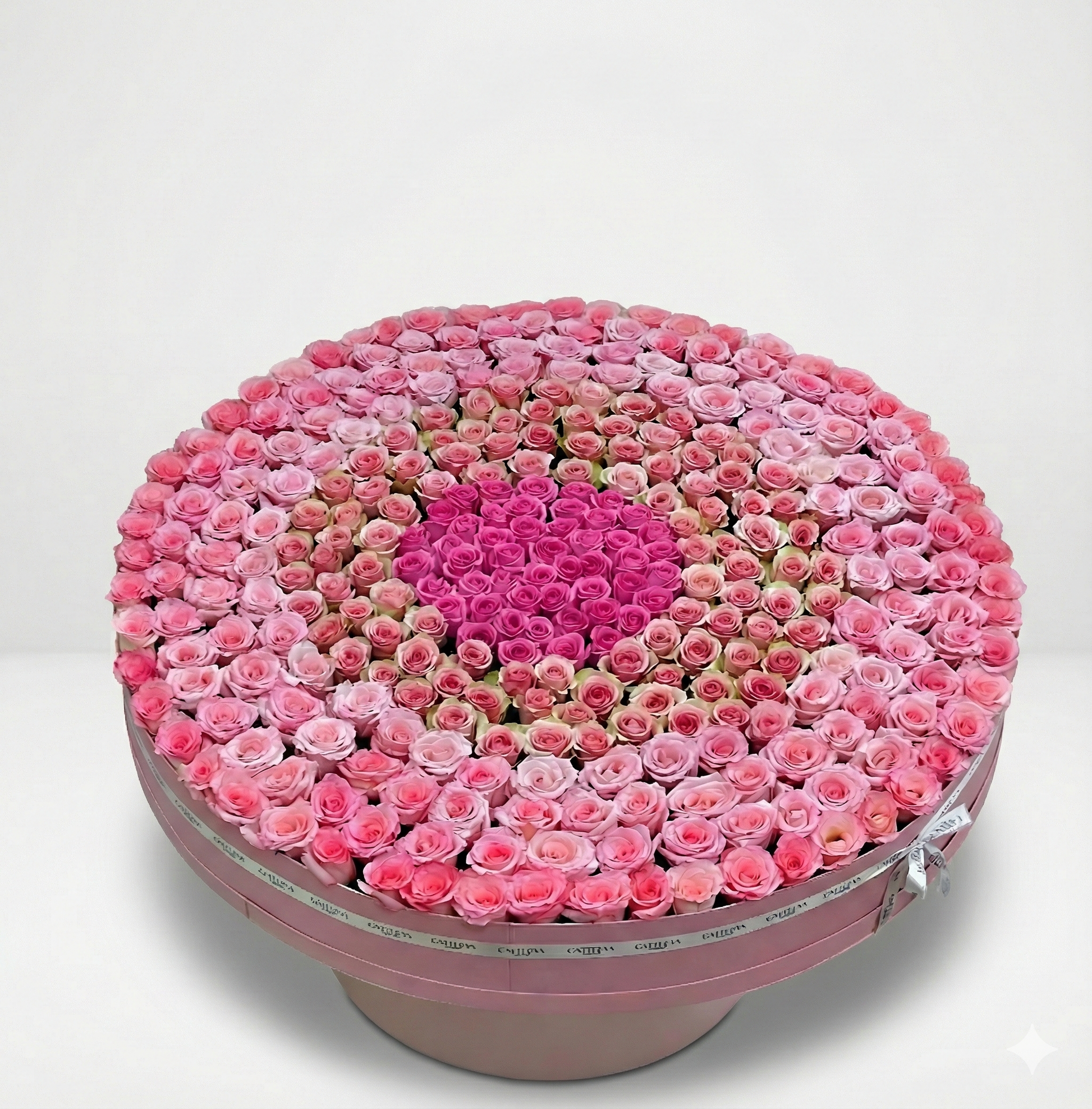 A breathtaking box filled with 400 premium pink roses, masterfully arranged in a lavish gradient. This opulent floral masterpiece is designed for unforgettable celebrations, luxury events, or expressing grand gestures of love and admiration